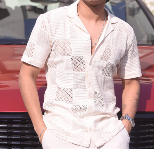 Men's haze white crochet Shirt - Elegance Not Extreme