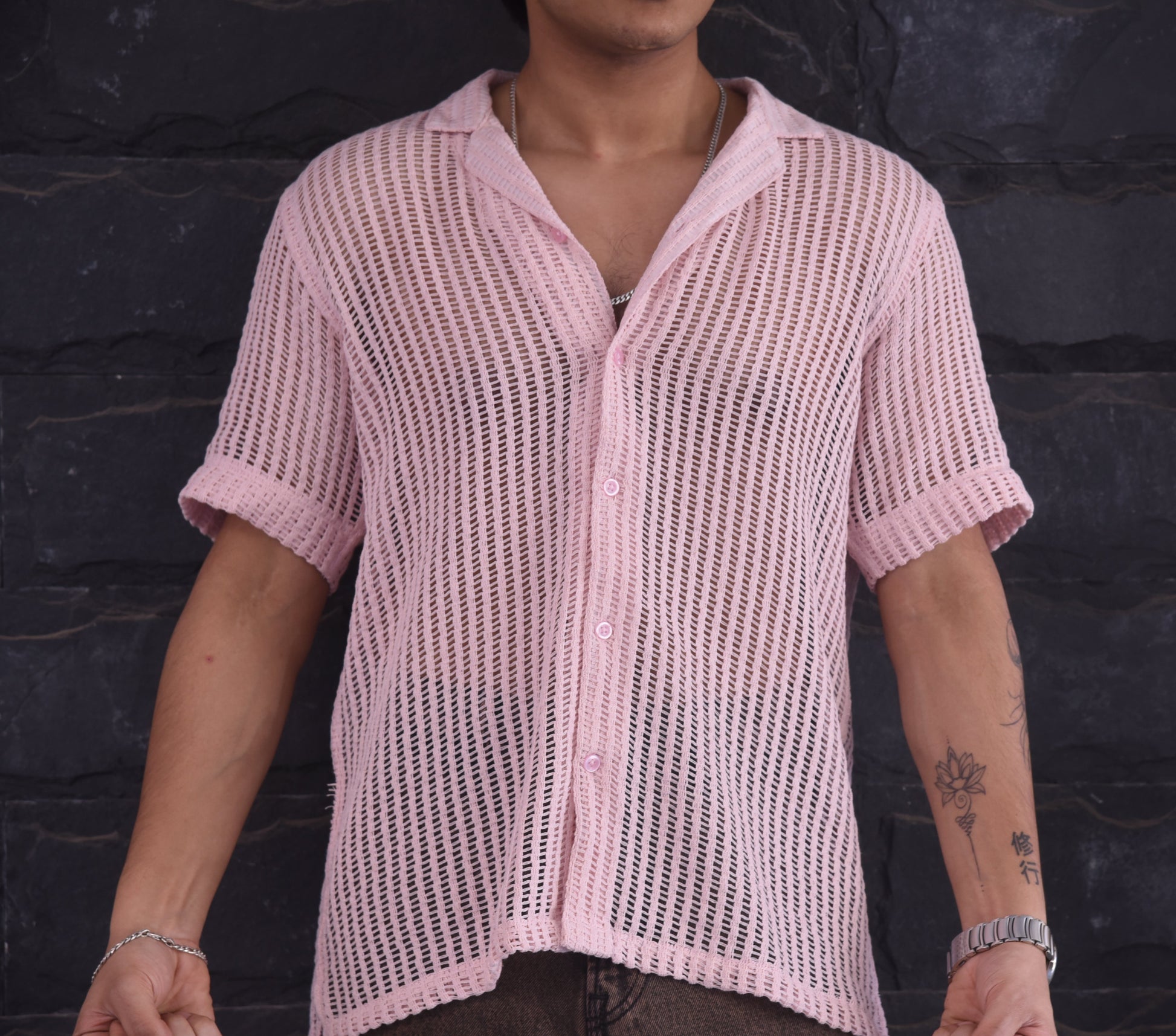 Men's Pearl Pink crochet shirt crochet Shirt | luxe - Elegance Not Extreme